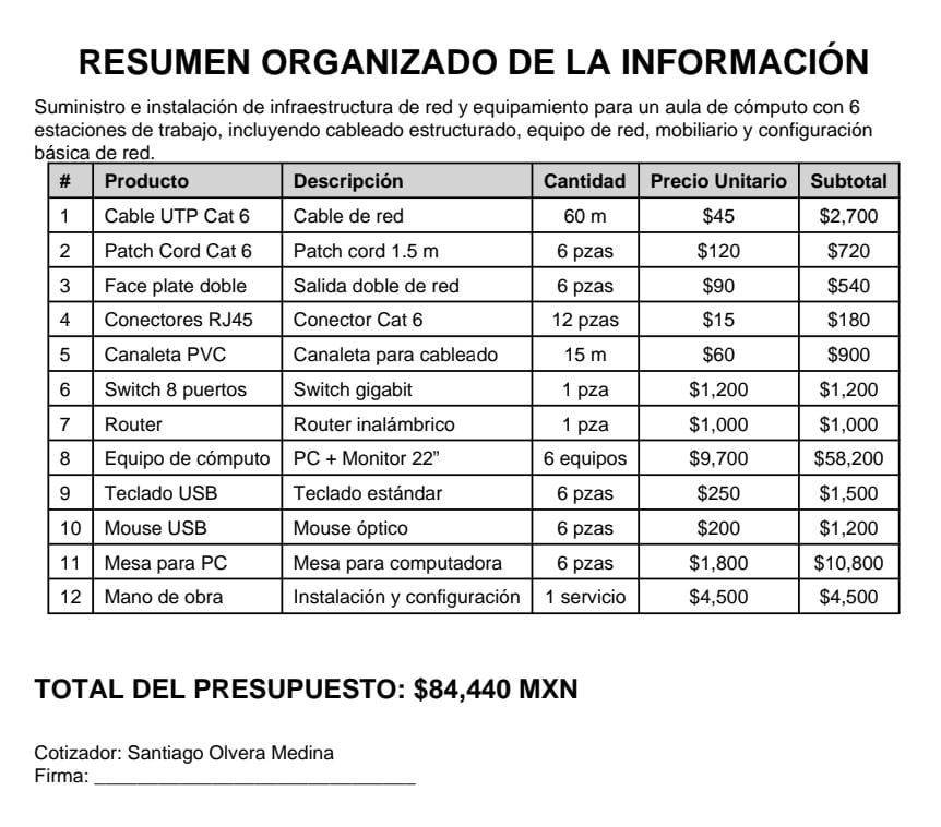 Se desea instalar una red en la papelería "Lapicito" para lo que necesitan 6 computadoras en la red para el sistema de cobro.